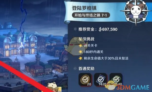 1、首先我们找到7-1的开启与终结之镇关卡开始挑战;