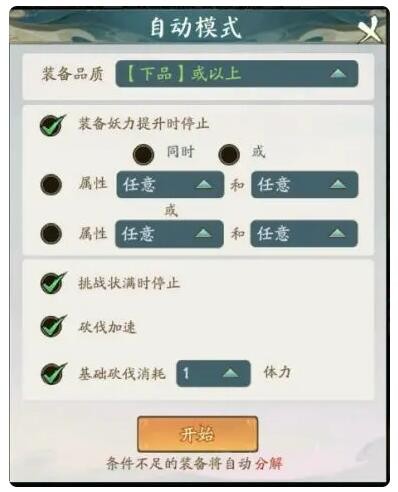 第一天主要就解锁这些玩法,炼气后期我们会解锁自动砍树,如果开了月卡的话还会解锁加速砍树,建议按下图设置,这样就可以一边挂机砍树一边去做别的任务。