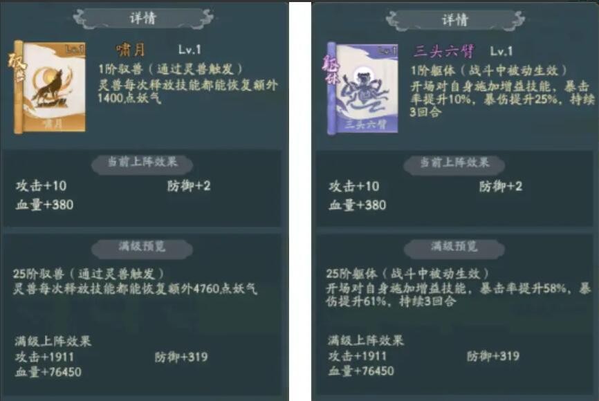 镇妖塔和冒险推关一样有一个小技巧,我们可以点开妖兽的信息面板分析一下当前的妖兽哪项属性较高,然后换上相应的抗性座驾,这样就能够大幅提高我们通关的成功率。