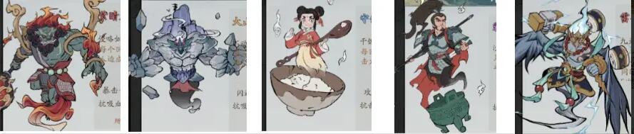 紫晶龙狮、大山妖、守饭童子、霸王、雷公