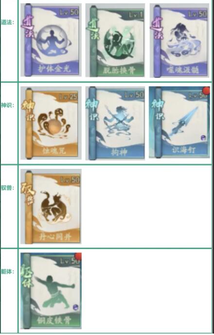 道法选择能回血的道法,护体金光很优秀。如果你是晕爆,为了持续晕,可选择噬魂汲髓。