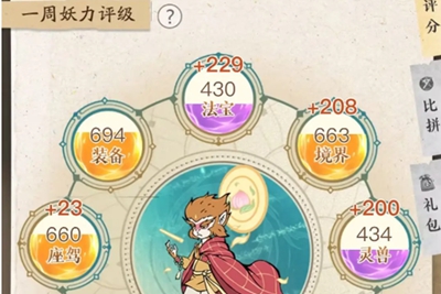 2、界面会根据玩家的一周妖力评级数值进行PK,有比拼大礼包等好礼等待领取。