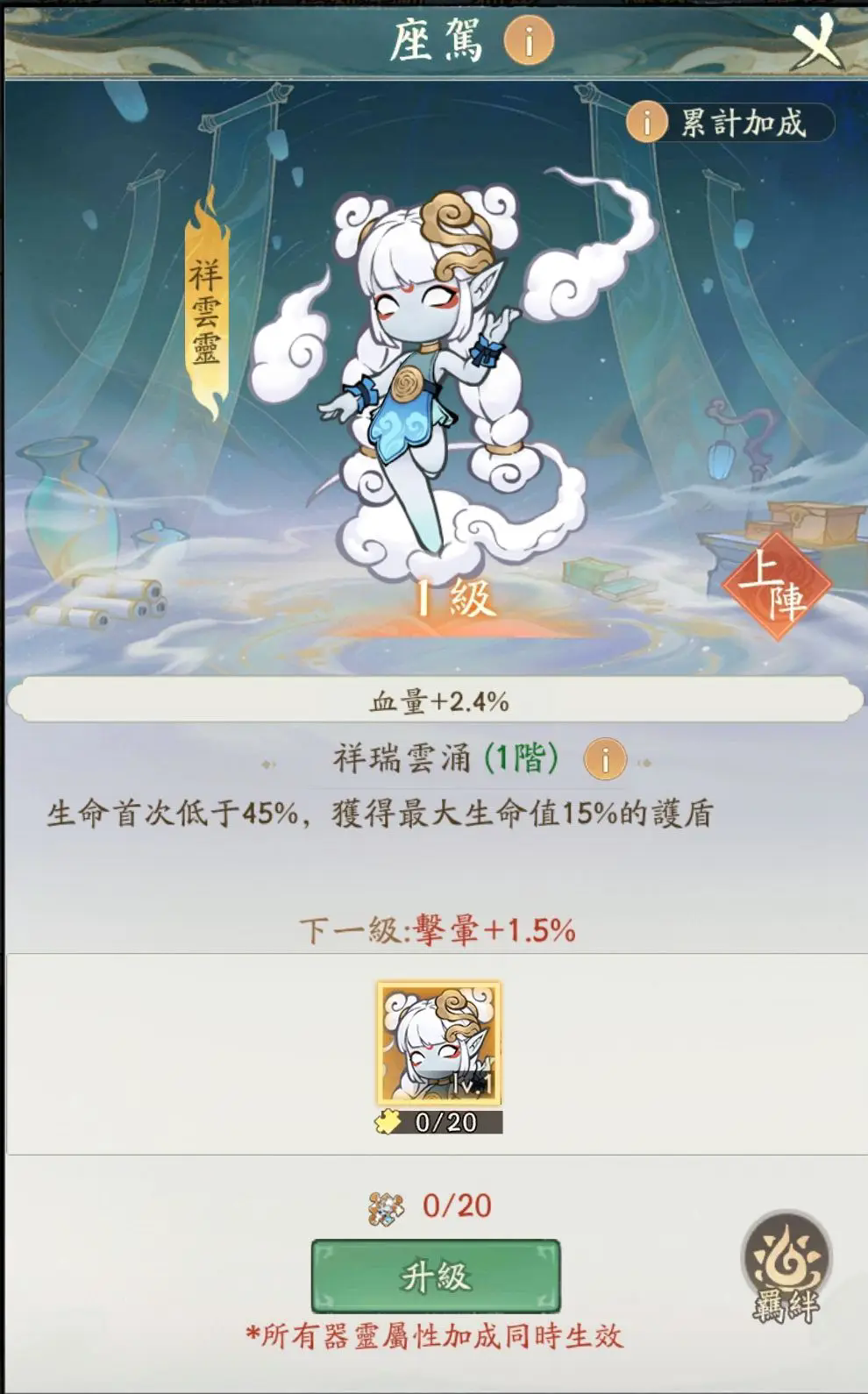 2、座驾器灵加成