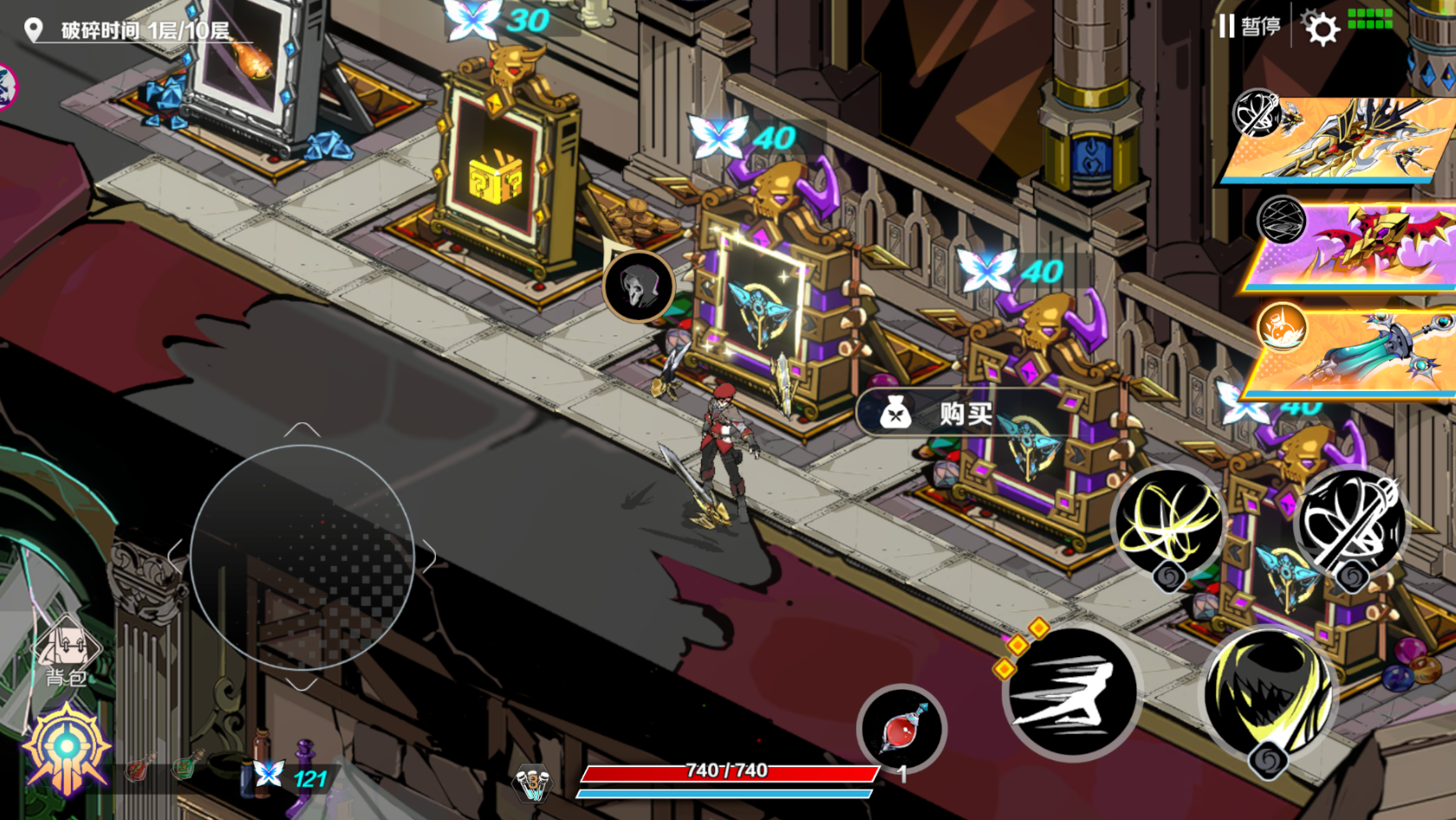 之后便可前往boss层进行挑战,挑战结束后会获得一定数量的秘境币,并会再次回到破碎空间进行购物。如此循环,一共击杀5个boss后无尽通关。