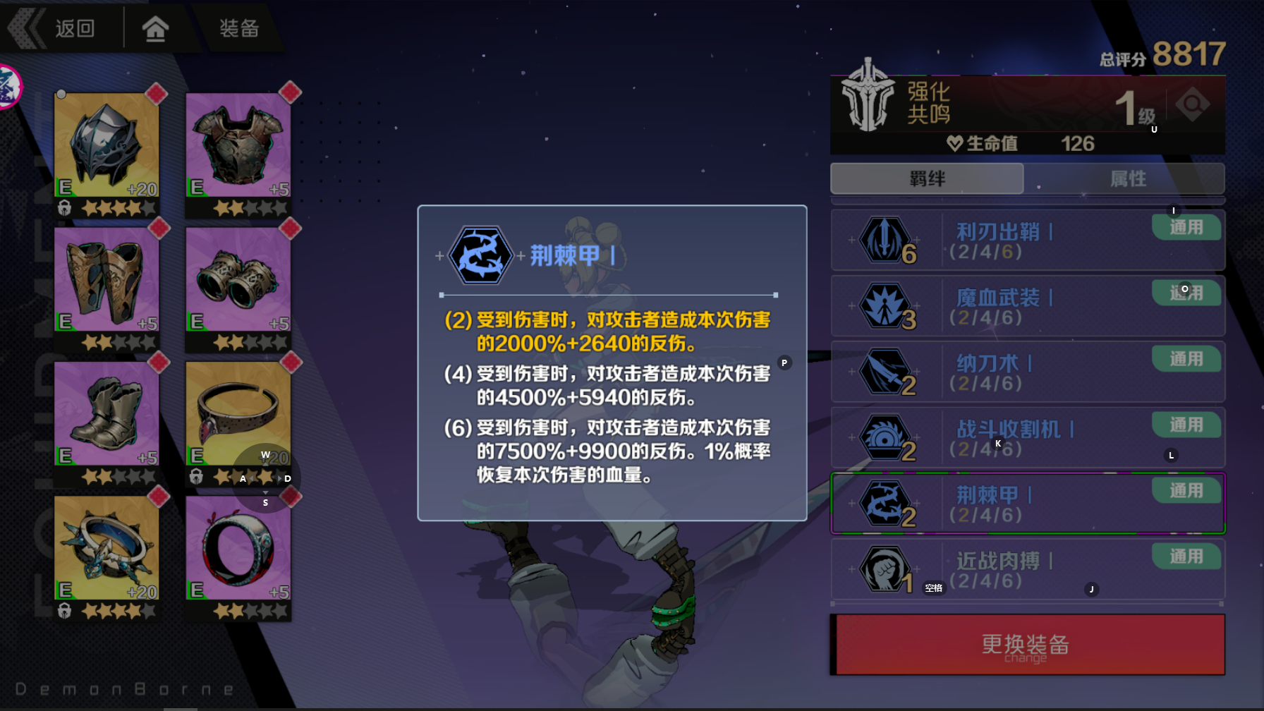 首先不推荐新手使用荆棘甲羁绊,毕竟boss一拳要我们老命,这反弹一下可能boss血皮都不掉
