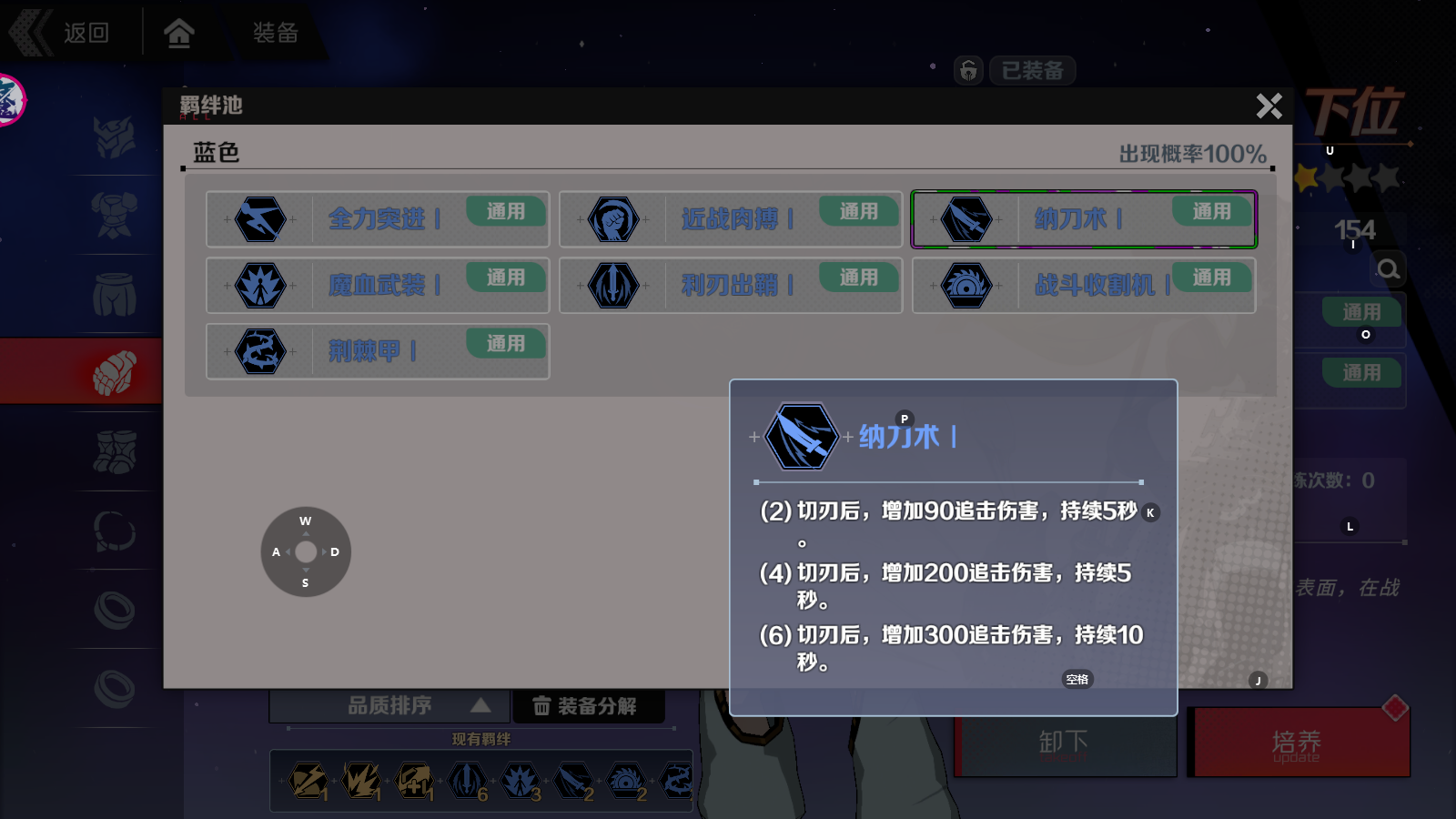 作为进攻向的羁绊,我还是更推荐新人使用稳定的利刃出鞘和纳刀术