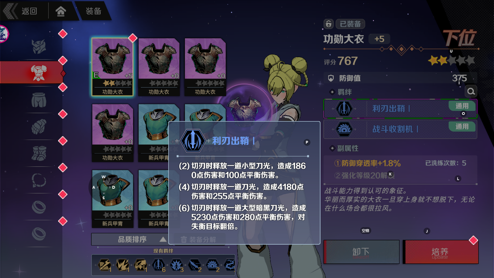 ※:前期所有初始羁绊是利刃出鞘的装备都不建议分解,包括蓝装
