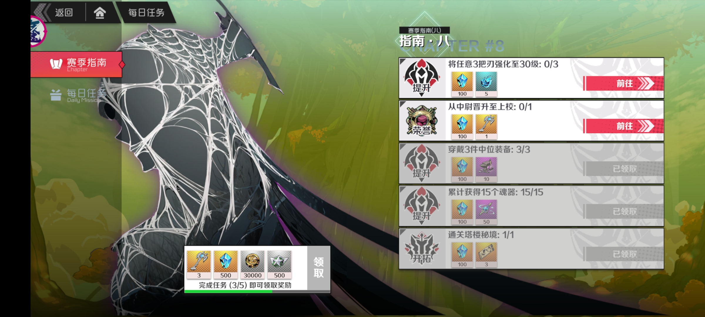 都准备好了之后就开始做任务,优先做指南任务,这个给经验值。每次副本首通也会给经验值(除了无尽模式)。经验对我们很重要,因为副本都需要到达多少的军衔之后开启。探索副本解锁之后尽量把体力清一下。