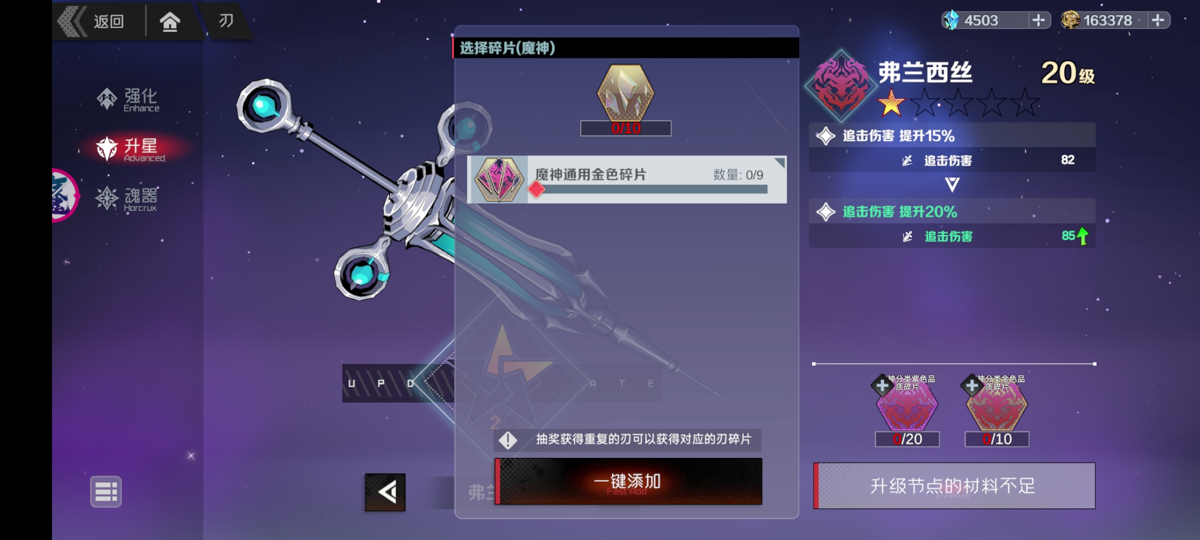 目前游戏只有三个阵营的武器,如果装备三把同阵营武器我们最终伤害会提升10%。当然,我很不推荐用三把同阵营武器,因为武器升星可以用同阵营武器的碎片来升,本体碎片只有突破的时候需要,所以我们升5个小阶段的时候用别的碎片,突破的时候用本体就行。这就导致了我们一个阵营只能升一把武器上去。所以这10%的增伤不要也罢!