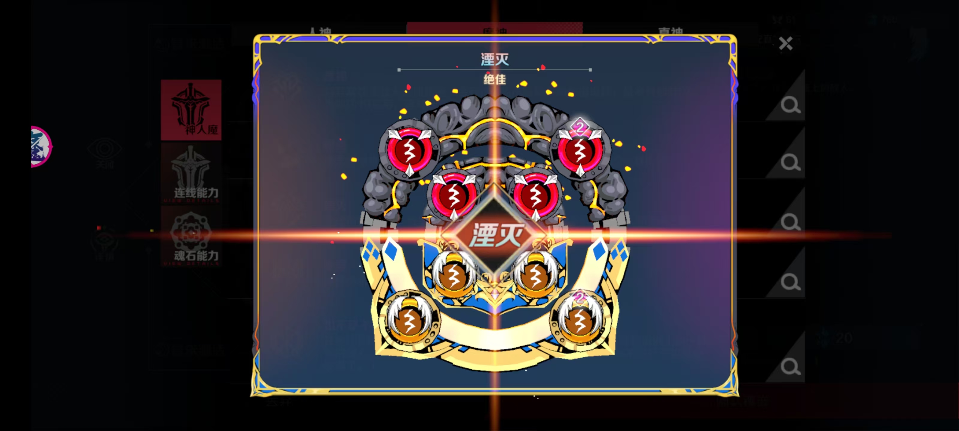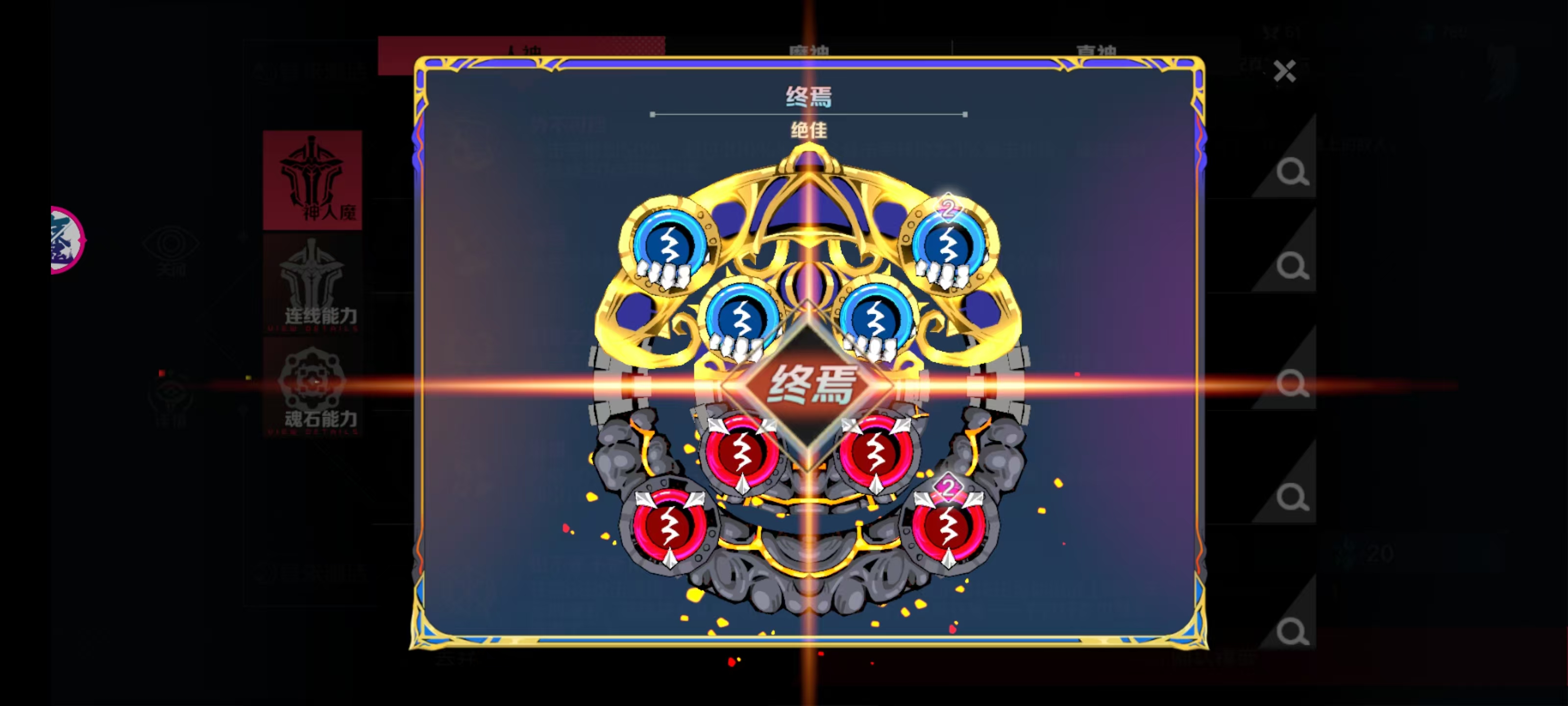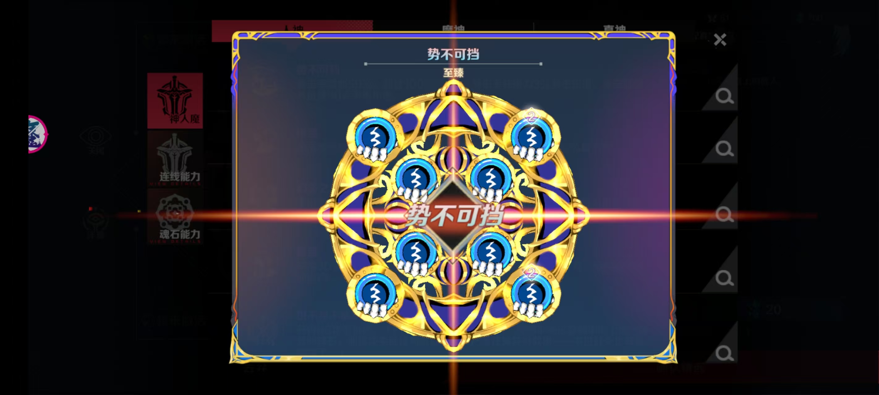 刃境一局游戏中法盘上同一魂石类型数量,影响魂石等级(最高八级)