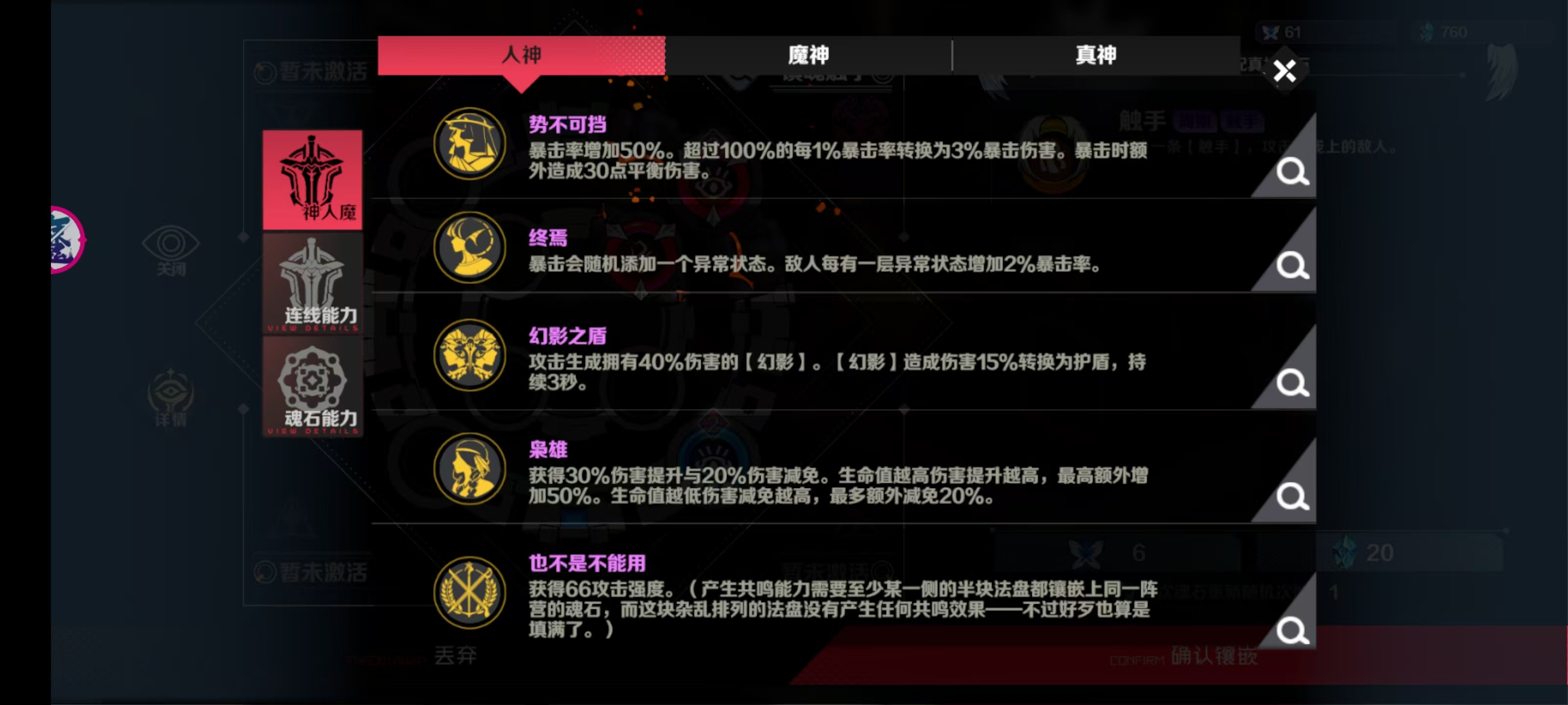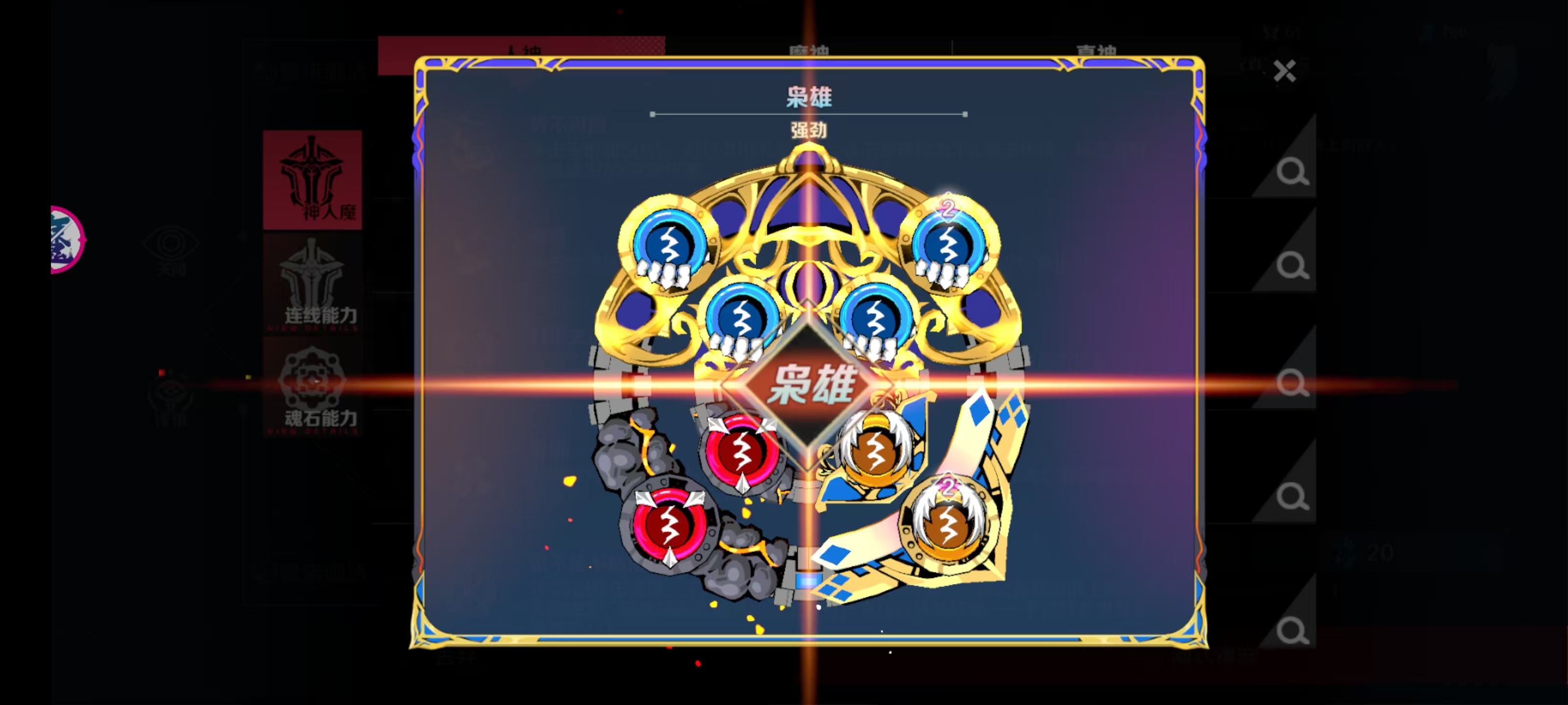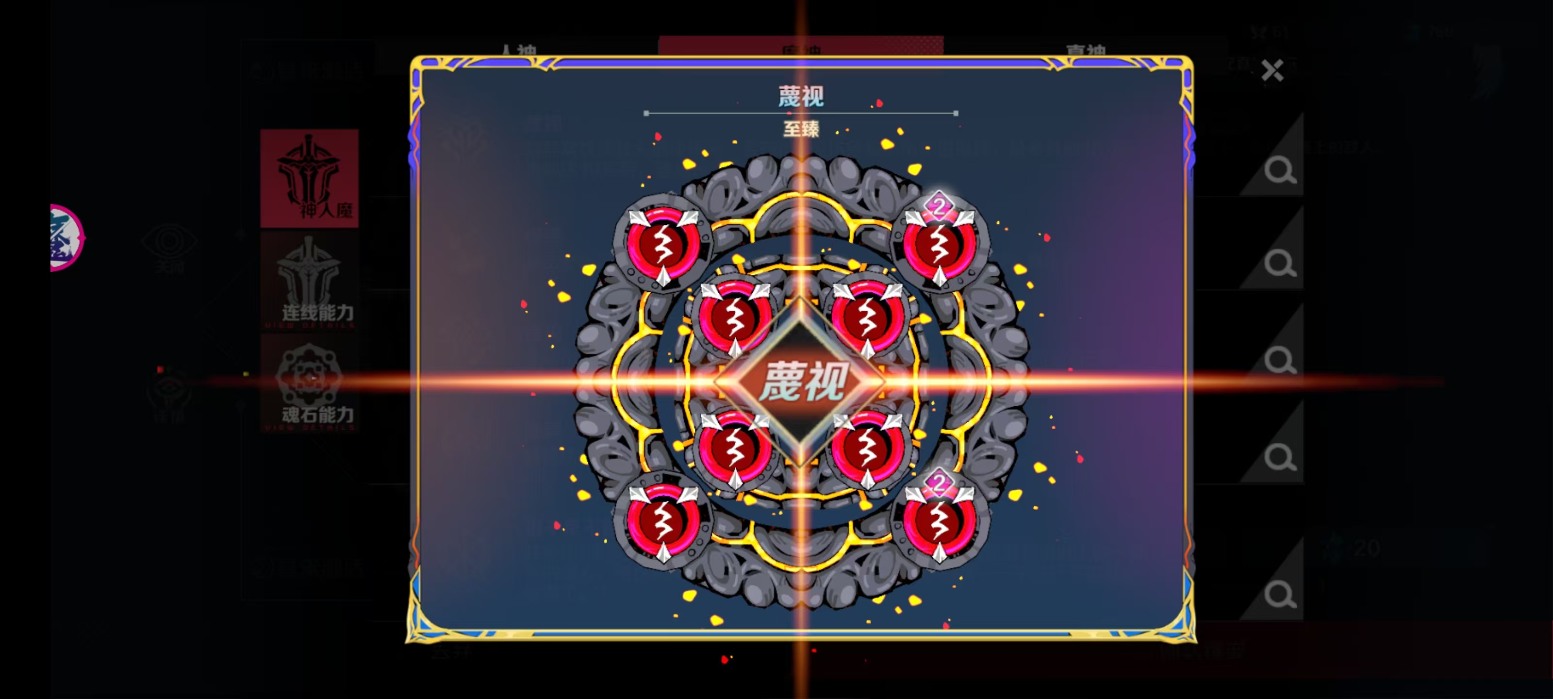 刃境一局游戏中法盘上同一魂石类型数量,影响魂石等级(最高八级)