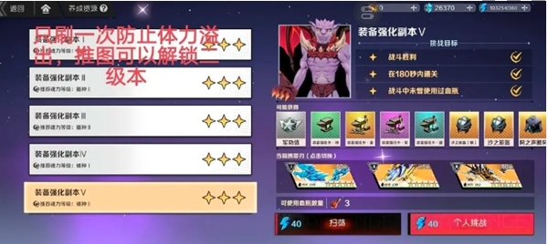 2、体力:由于首次通关不消耗体力,所以解锁后优先打首通。第一天刚开资源本刷一次强化副本,然后去推图解锁到二级本再去刷强化。第二天可以解锁三级本,前期一直刷强化,刷满一套装备再考虑金币和其它副本。