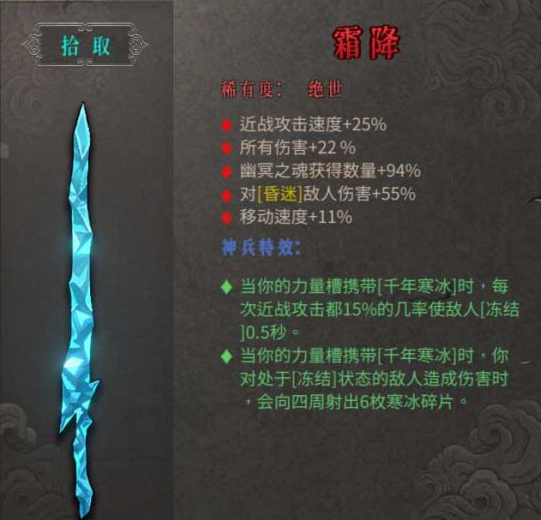 《暖雪》绝世武器霜降属性