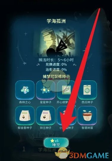 3、接着在学海孤洲玩法中,点击下方的睡觉功能;