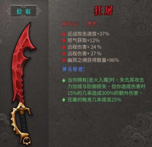 以上就是小编整理带来的暖雪绝世武器狂屠怎么样,暖雪绝世武器狂屠属性,更多相关游戏攻略,请关注易采游戏网!
