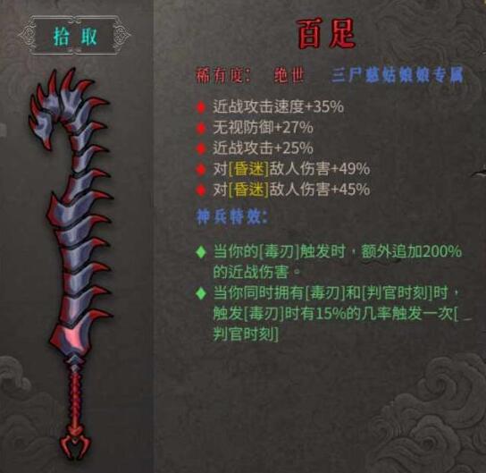 以上就是小编整理带来的暖雪绝世武器百足怎么样,暖雪绝世武器百足属性,更多相关游戏攻略,请关注易采游戏网!