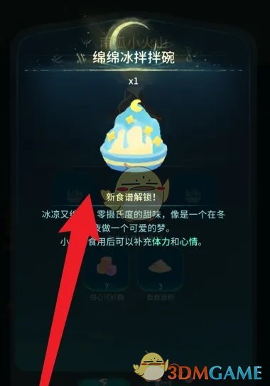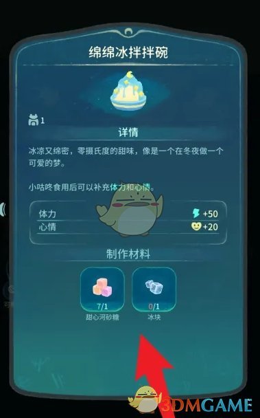 答:前往小南瓜火山,找到绵绵冰拌碗,消耗冰块和砂糖制作即可获得。