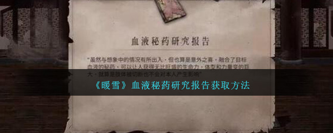 以上就是小编整理带来的《暖雪》血液秘药研究报告获取方法,更多精彩内容,请点击关注易采游戏网!