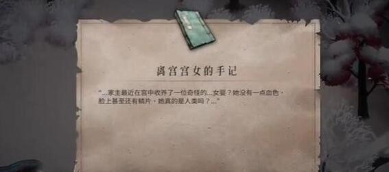 以上就是小编整理带来的《暖雪》终业DLC离宫宫女手记获取方法分享,更多精彩内容,请点击关注易采游戏网!