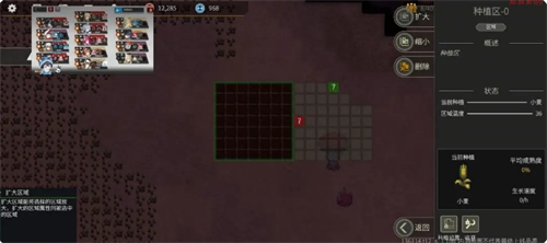 种完一种作物点删除,删除种植区后,可以在其他地方继续种,这样收获时基本会有几千甚至上万的收获,食物,硅木是完全不缺的。