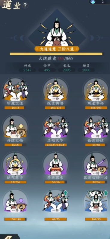 道业系统需要消耗玩家大量的道运数值,道运数值在游戏当中获取途径总共有三个,第一个是完成主线剧情内容,当完成某一个大章节的主线剧情时,玩家即可获取道业精进的相关数值,第二种获取道运数值的方式是玩家提升游戏等级,玩家每升级一级,就能够获得一点道运天赋点,天赋点在游戏当中实际上是非常重要的,在二十级之后,玩家每升级五级,才能够获得一点的道运天赋点,固然在前期,玩家每一次的选择都尤为关键。