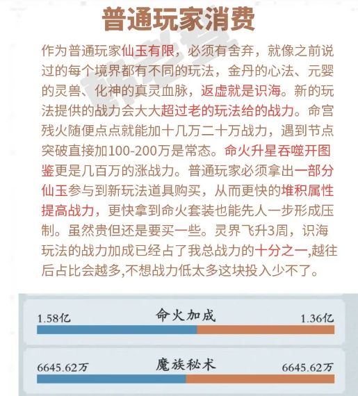 作为普通玩家仙玉有限,必须有舍弃,就像之前说过的每个境界都有不同的玩法,金丹的心法、元婴的灵兽、化神的真灵血脉,返虚就是识海。新的玩法提供的战力会大大超过老的玩法给的战力。