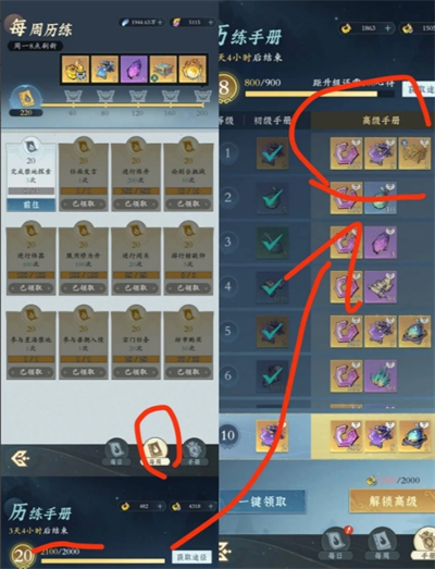 2、周任务奖励(静心心得能提前拿多几层奖励)