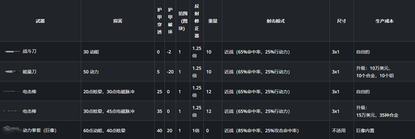 在《异星航员2》中,近战武器的实用性出乎意料地高。它们的命中公式与普通武器不同,命中率由攻击的精准度(通常为65%)加上攻击者和目标之间的反应速度差值(该差值可能为负)构成。因此,反应速度高的士兵对大多数外星人拥有较高的近战命中率,尤其是在被压制的敌人本回合剩余时间内反应速度减半的情况下!