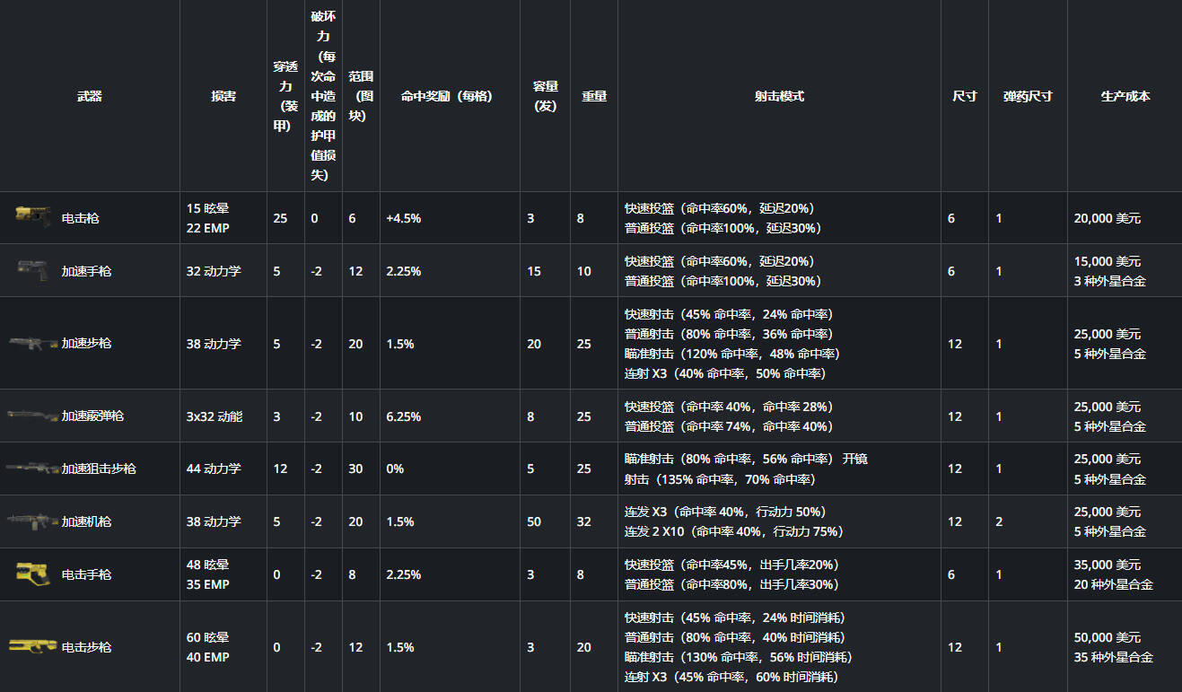 异种航员2武器图鉴一览 异种航员2全类型武器介绍