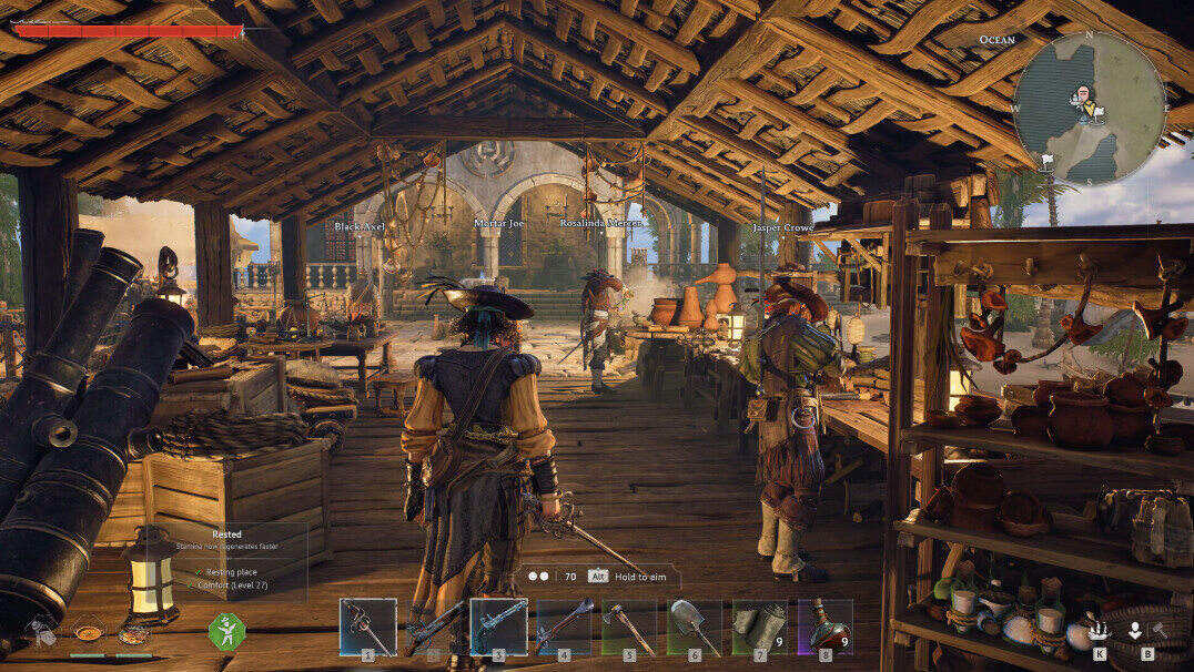 推荐按功能区域来规划基地:核心区(床、篝火、基础箱子,放在据点中央方便访问);生产区(熔炉、工作台、料理台等,集中放置方便批量生产);存储区(大量储物箱集中放置,分类存储不同材料);港口区(临海的船坞和造船设施);防御圈(围墙环绕整个基地,关键出入口加门)。每个区域之间留够通道,避免走来走去要绕路。