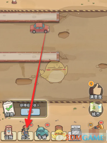 1、首先我们需要进入到游戏主界面,在下方的位置点击员工栏目。