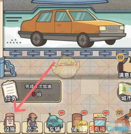 1、首先我们需要进入游戏主页面,在左下角的位置点击设施进入。