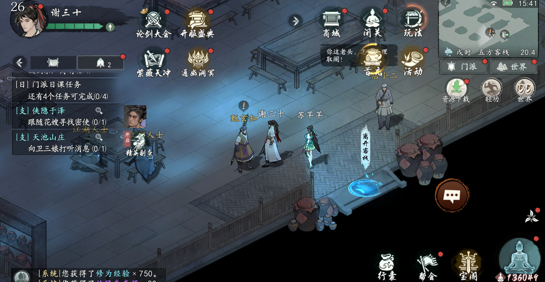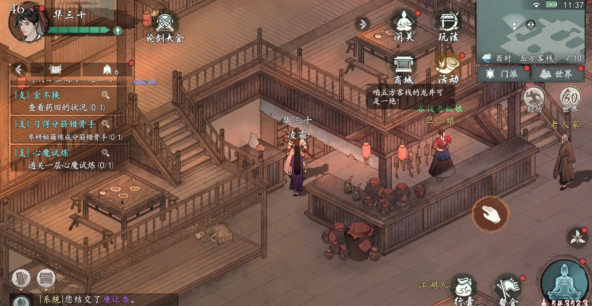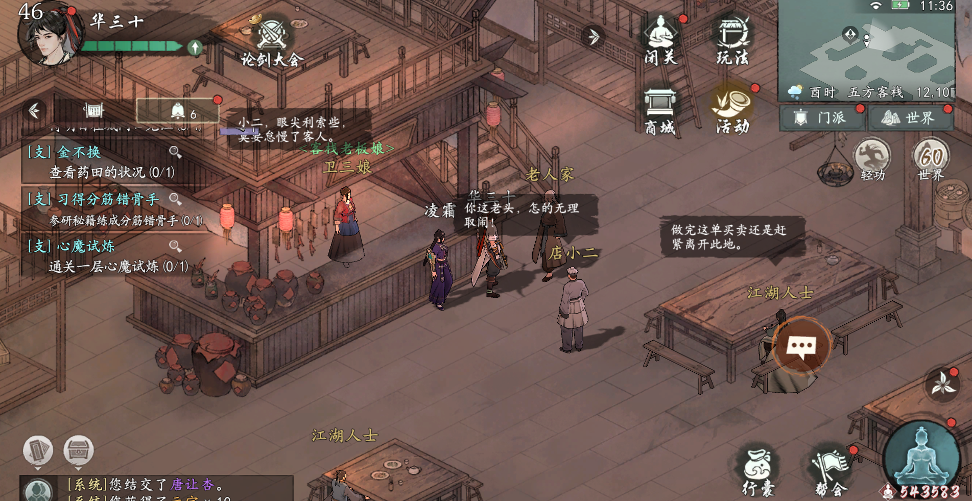 在五方客栈里和江湖人士对话(坐标:18_4)