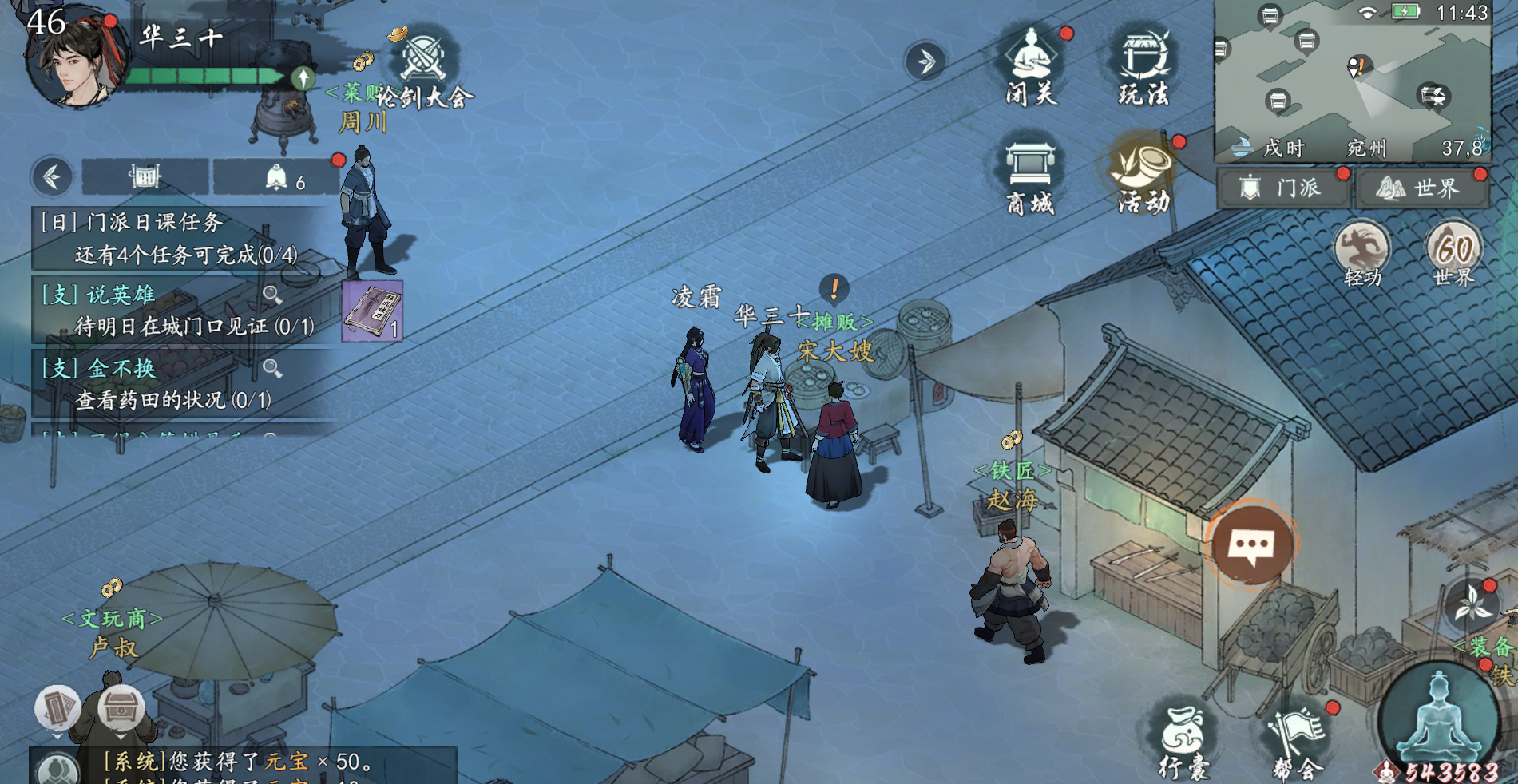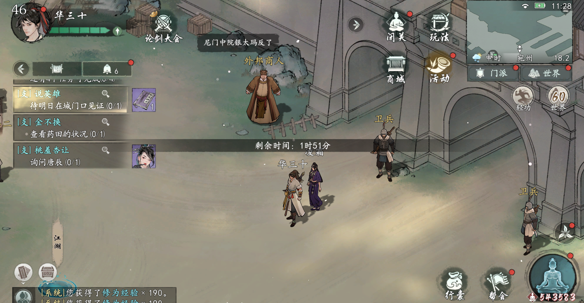 根据任务引导完成(任务坐标:宛州49_13),最后去城门口(坐标:宛州18_2)