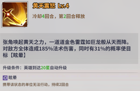 致尊敬的调查员,无双神将英雄【张角】是冒险旅途中一名强而有力的战将。