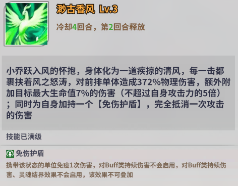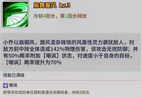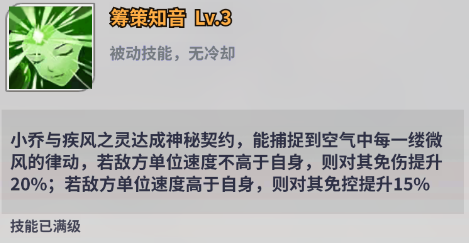小乔在队伍中担任前排的坦位,对敌方造成伤害时有概率嘲讽该目标,可有效分摊一部分伤害。此外,小乔也可以为自身提供免伤护盾,在一定程度上增强了保命性能。