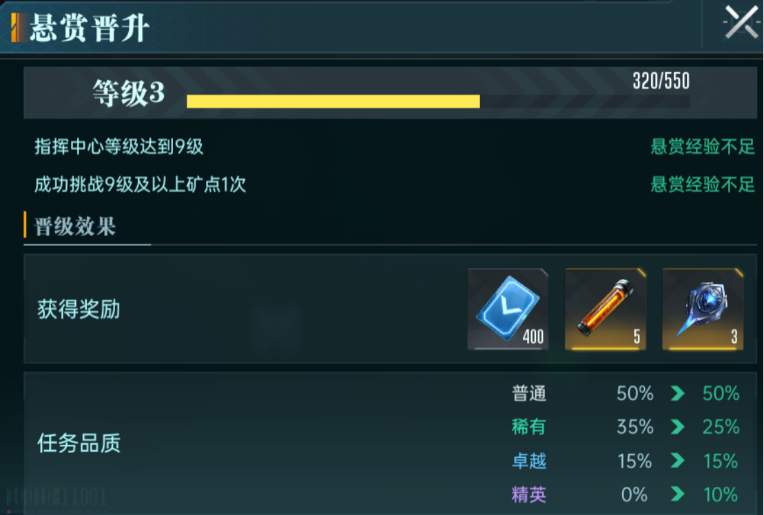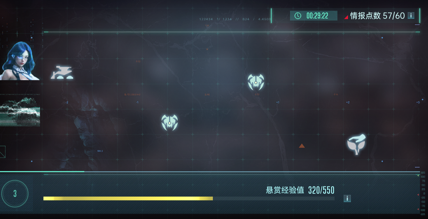 情报点数每半小时回复1次,上限60点,每天48点,建议尽量做完!!同时尽可能选择高品质任务和快速提升悬赏等级,悬赏等级越高高品质任务刷出概率越大