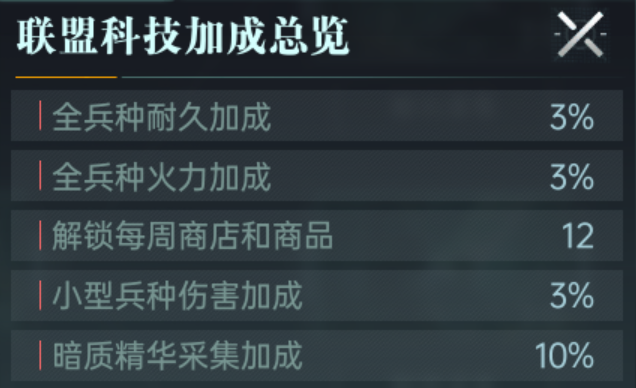 科技研究:许多联盟会有科技系统,成员可以共同捐献资源来研究联盟科技,从而给所有成员带来战斗力、资源生产等方面的加成。