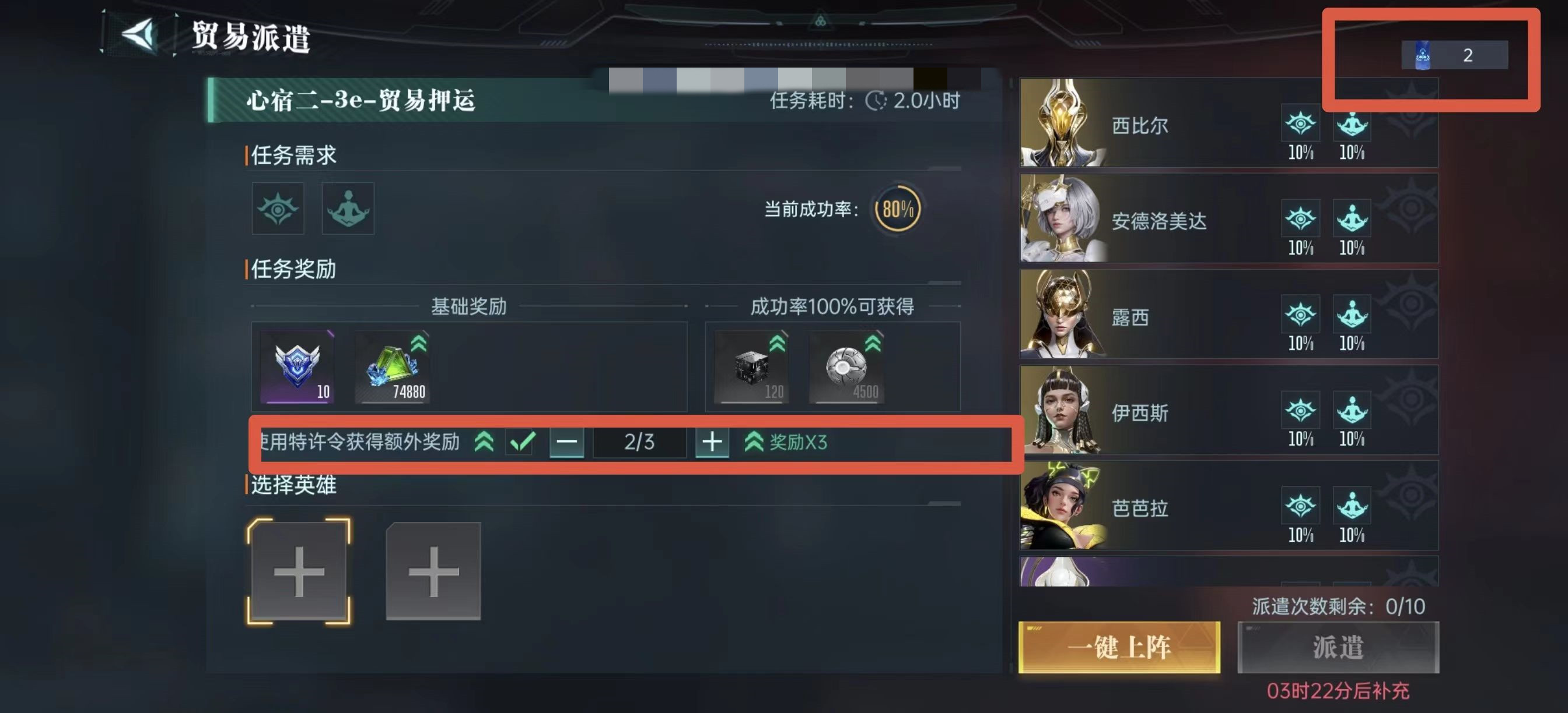 要想大量获得进阶资源,首先要搞清楚渠道,然后要掌握一定的技巧。第1个活动是势力悬赏,这个活动可以产出很多进阶所需要的资源,技巧是利用好任务重置卡,把一些白色的低级任务直接刷到更高等级,从而能从这里拿到更多资源和悬赏经验。第2个是星际贸易活动,星际贸易活动中有一个道具很重要,那就是贸易特许令,这个道具能够加倍获取奖励,优先给橙色任务使用。