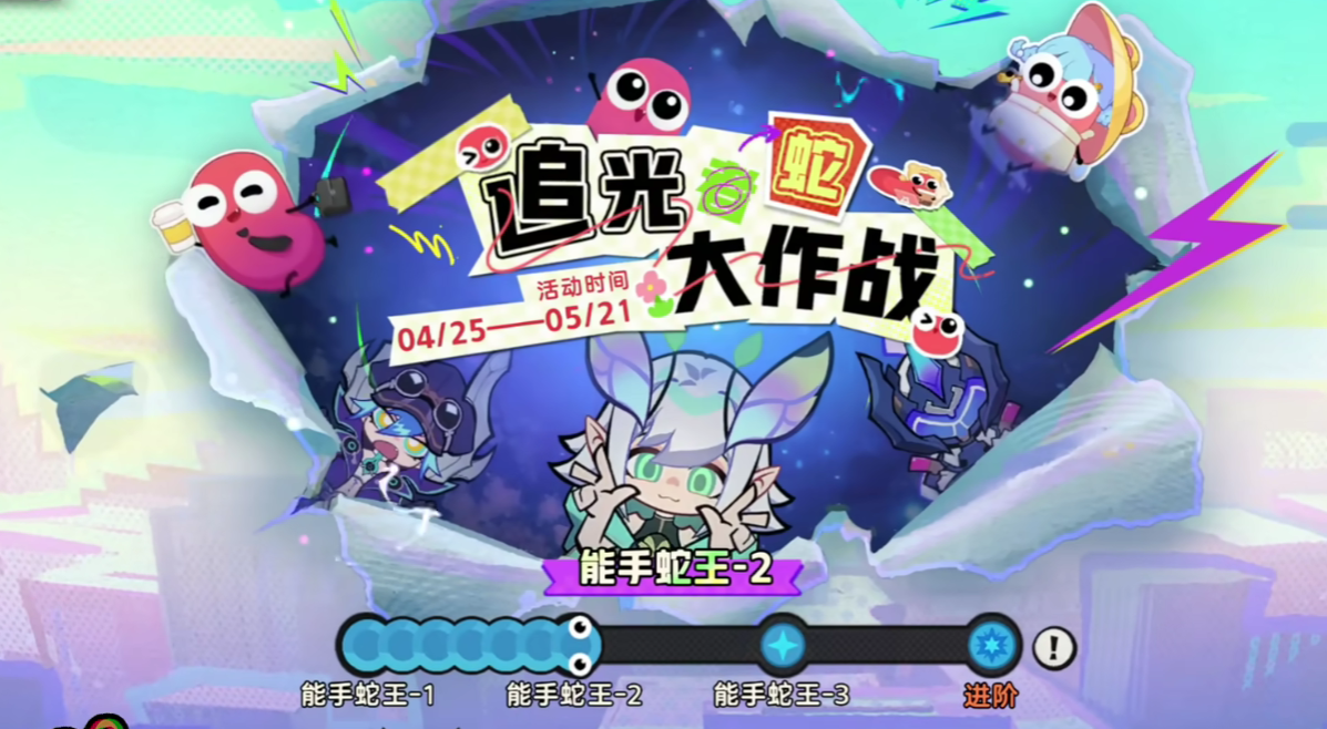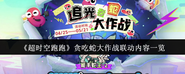此次超时空跑跑贪吃蛇大作战的联动,名称叫做追光的蛇,活动维系时间为今年度的4月25号到5月21号。