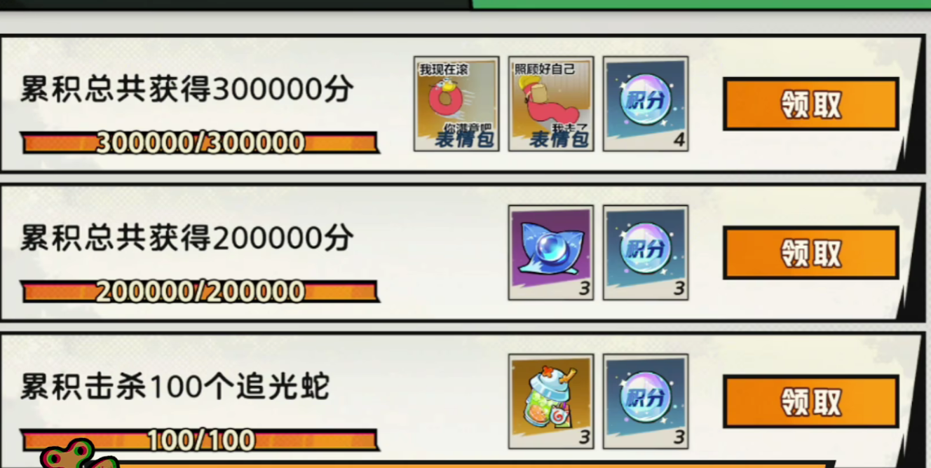 它总共有四个阶段,分别代表的是,能手蛇王一阶段、能手蛇王二阶段、能手蛇王三阶段,以及进阶状态,玩家在游戏当中,必须完成所有的跑酷场景地图,才能够获取活动奖励。