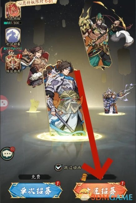3、在高级招募页面,可以选单抽或者十连,十连抽的概率更高;