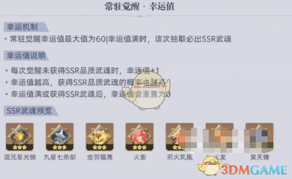 常驻觉醒幸运值最大值为60|幸运值满时,该次抽取必出SSR武魂