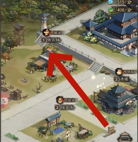 2、随后在驻地页面,找到铁匠铺前往;