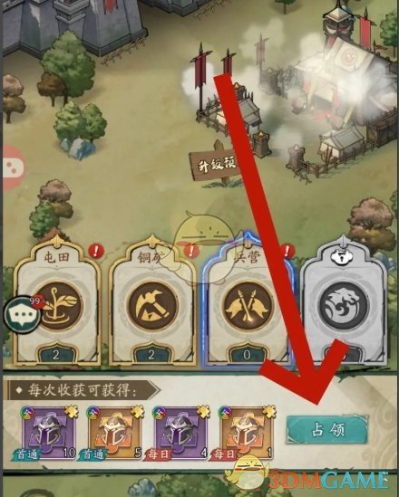 答:在历练页面点击厉兵秣马,选择兵营-占领兵营,占领成功即可领取资源奖励