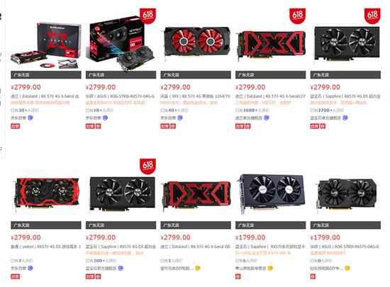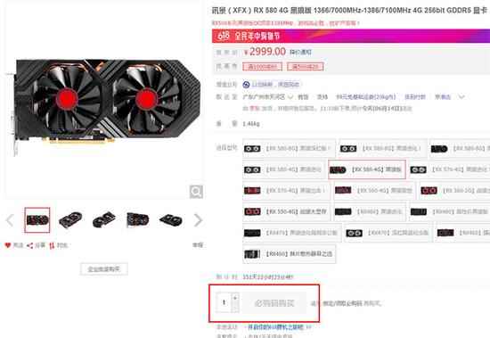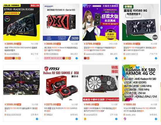XFX RX 580可以用必购码 淘宝上搜索RX 580显卡,还有几个在卖,但多要3000元左右,最贵的一家更是卖到4599元,要知道RX 580的MSRP才1999元。AMD RX 570、RX 480则在淘宝上没几家有货,只有一些台湾代购。 闲鱼上倒是有不少RX 480显卡在售,价格在1899-2199元左右,可能卖家们做梦都没想过买了大半年居然还可以原价二手出。