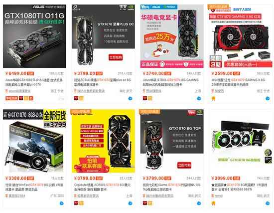 GTX 1080 Ti虽然多为无货,但其实可以买到还有不少 淘宝上的GTX 1060显卡则全面涨价,价格在2400元左右,这比1999元的MSRP要稍贵,但相比RX 580的情况还是好很多。至于GTX 1070、GTX 1080、GTX 1080Ti这三张显卡就不难买到,虽略有一点涨价,但还算合理。