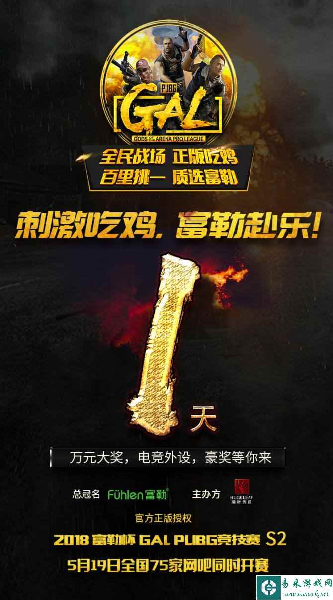 2018富勒(Fuhlen)杯GAL PUBG竞技赛S2即将于5月19日“开战”,倒计时还有1天。届时,将在全国,共75家网咖同时开赛,本赛季汇集了近万名参赛选手,盛况空前,争霸吃鸡王热情高涨。赛事详情可进富勒官网了解(传送门)