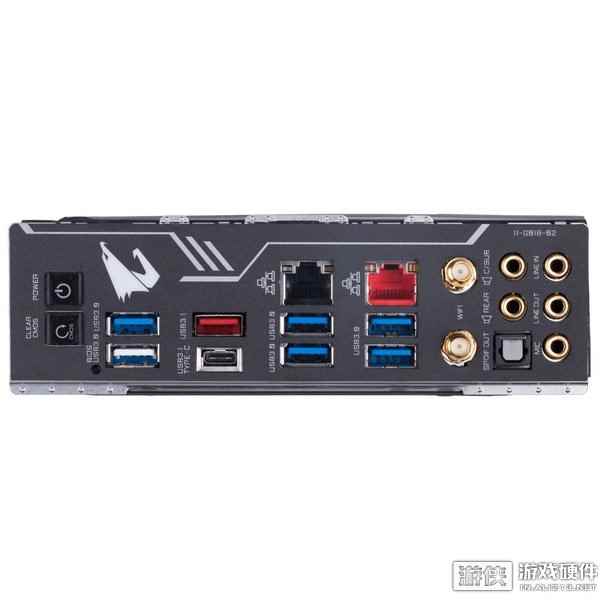 X299 AORUS MASTER的尾部I/O扩展包括:COMS重置、电源开机键、2T2R无线天线扩展、2个USB3.1 GEN.2 TYPE-C/TYPE-A,6个USB3.1 Gen.1,2.5GbE LAN+千兆LAN,optical S/PDIF以及5孔音频端。 |
