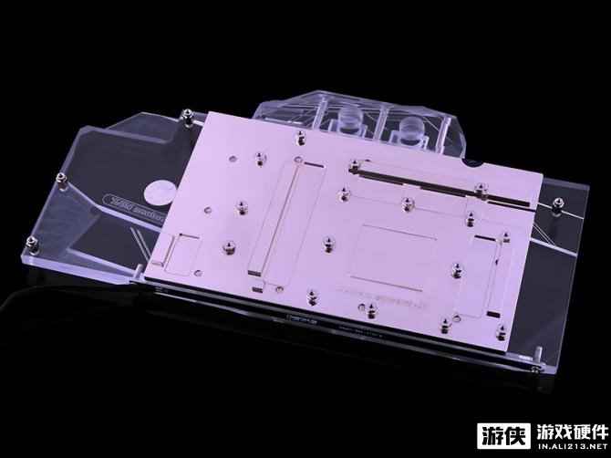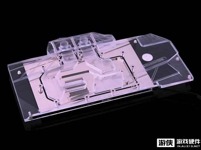 除了GPU核心外,它还是一个全覆盖型水冷头,可以散热HBM 2內存和电源回路,采用高纯度的铜作为基底,导热性能优异。0.5 mm间距的微翅片结构和优化的流量设计使得即使使用低流量泵也能够表现出高散热性能。